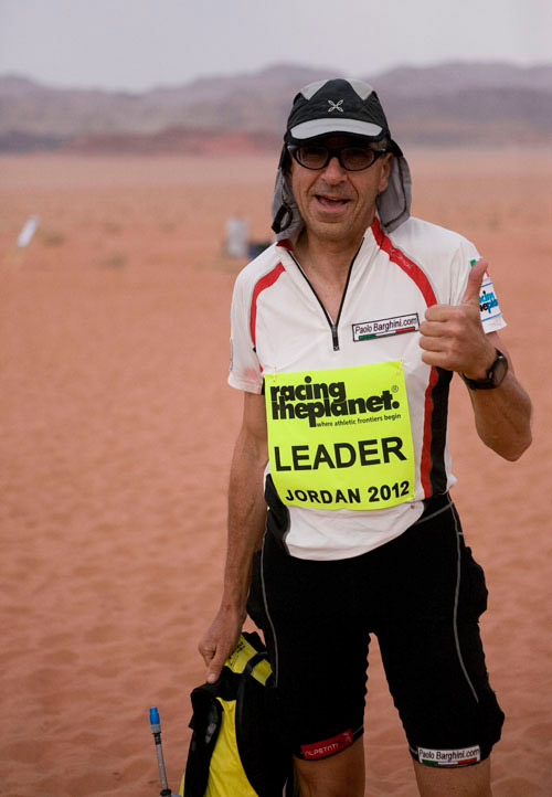 Barghini dice che è stato il sorteggio della Giordania, che lo ha spinto a iniziare la formazione iniziale. "Sono venuto in Giordania perché volevo vedere Petra," dice. "Dopo aver vinto la Sahara Race 2009 e aver vinto sotto le Piramidi [di Giza], è bello vincere questa gara che finisce a Petra, un'altra gara fantastica. RacingThePlanet mi ha dato la possibilità di venire qui e correre e il Wadi Rum è un deserto fantastico ".