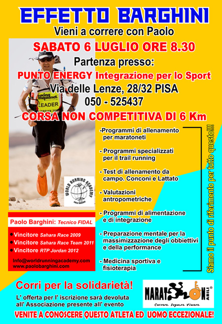 Sabato 6 luglio 2013 ore 8.30, Punto Energy organizza Corsa non competitiva di 6Km insieme a Paolo a favore di