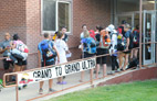 traguardo per un il briefing pre-gara, dopo una notte di di vento forte, che ha obbligato la chiusura di alcune tende