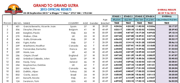 Attenzione: molto probabilmente nel riportare la classifica della 4 tappa è stato commesso un errore, è stato assegnato al Belga Steven Sleuyter un tempo nel "Tappone" di 13:52 portando quindi Paolo ad una distanza di soli 11 minuti (nella classifica generale pubblicata oggi), ma temo che sia un errore e che il vero tempo di Steven sia quello riportato precedentemente 12:01.